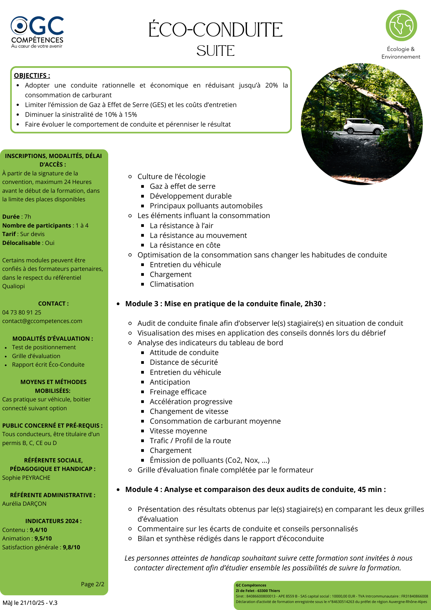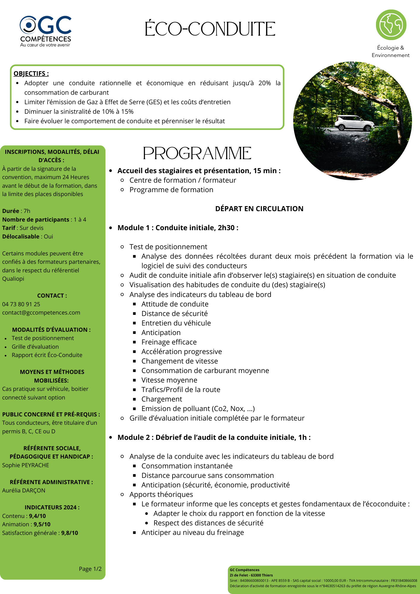 En tant que citoyen ou professionnel du transport, adopter les bons gestes de conduite en faveur de l’environnement est devenu une nécessité pour circuler au quotidien sur les routes. Conduire de manière économique et rationnelle s’apprend : cette technique de conduite permet de réduire sa consommation de carburant, et donc ainsi limiter l’émission de gaz à effet de serre, responsable du réchauffement climatique. En moyenne, au sein du Groupe Combronde, la formation Eco-conduite a permis d'économiser en moyenne 2.5L/100 par conducteur PL et SPL. Elle permet également de faire des économies en réduisant l’usure des freins et des pneumatiques. L’éco-conduite met aussi en avant la prudence et la sécurité, diminuant de fait le nombre d’accidents | Il s’agit, durant cette formation ouverte à tous les détenteurs d’un permis de conduire (B, C et CE) en cours de validité (et de la FCO/FIMO pour les véhicules lourds), de s’intéresser à la pression des pneus, à l’entretien du véhicule, à sa charge, à la souplesse de conduite, aux usages de la climatisation… La formation Éco-Conduite délivrée par GC Compétences se compose d’enseignements théoriques et pratiques. Des audits en situation de trajet sont réalisés : le premier a lieu en début de journée et a pour but de poser un diagnostic sur les habitudes du conducteur, il est suivi d’une analyse et d’un apport de corrections des pratiques, avant d’établir un second audit d’évaluation des connaissances acquises et leur mise en application. |